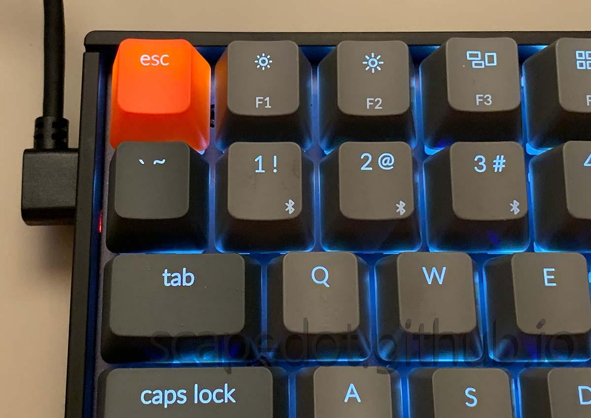 포장을 뜯어 제품을 보니 생각보다 더 디자인이 마음에 듭니다. 회색의 자판, 주황색의 Esc키와 백라이트 키. 외관은 아주 훌륭합니다. 동봉된 usb케이블도 키보드 측은 usb-c에 ㄱ자로 되어 있습니다.