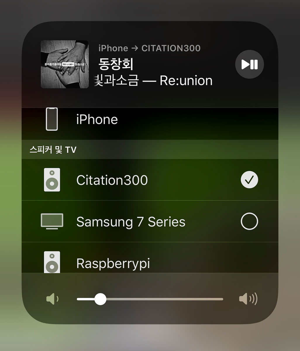 구글홈 앱에 사이테이션 300을 연결하니 곧장 시스템 업데이트부터 시작합니다. 업데이트를 하고 나니 ‘Airplay'가 되더군요.