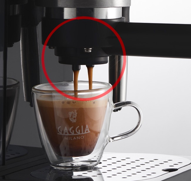 추출된 에스프레소가 아래로 떨어져서 두갈래로 갈라져 나오는 부분을 스파웃이라고 합니다. 바텀리스는 이 부분을 통째로 들어내서 바스켓에서 추출되는 에스프레소가 바로 컵으로 떨어지게 해놓은 것입니다. 아래가 뚫려 있다보니 추출 상황도 관찰할 수 있습니다.