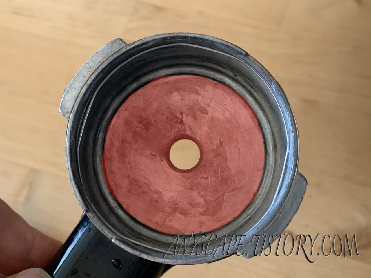 가찌아 그랜의 포타필터에는 가압필터라는게 달려 있습니다. 인공적으로 크레마를 만들어 줘서 추출시 크레마를 더욱 풍성하게 만들어줍니다. 사람들은 이것을 ‘뻥 크레마’라고 합니다. 진짜 크레마가 아니라 모양만 크레마라는 거죠. 아무튼 이것 때문인지 늘 추출이 불균일 하다는 생각이 들었습니다. 이것을 과감하게 제거하겠습니다.