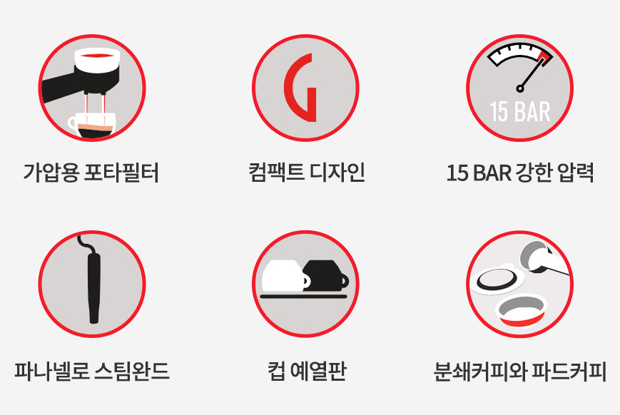 제품을 받아보니 15만 원이라는 가격이 오히려 비싸다고(?) 느껴질 정도로 제품이 부실했습니다. 싸구려 느낌이 많이 났습니다만 바스켓 하나는 제품 가격에 비해서 매우 훌륭한 느낌이었습니다. 심지어 1컵, 2컵용으로 바스켓이 2개나 들어 있습니다. 스팀도 가능한데 제가 라떼류를 별로 안 좋아해서 거의 사용하지 않아서 성능은 잘 모르겠습니다.