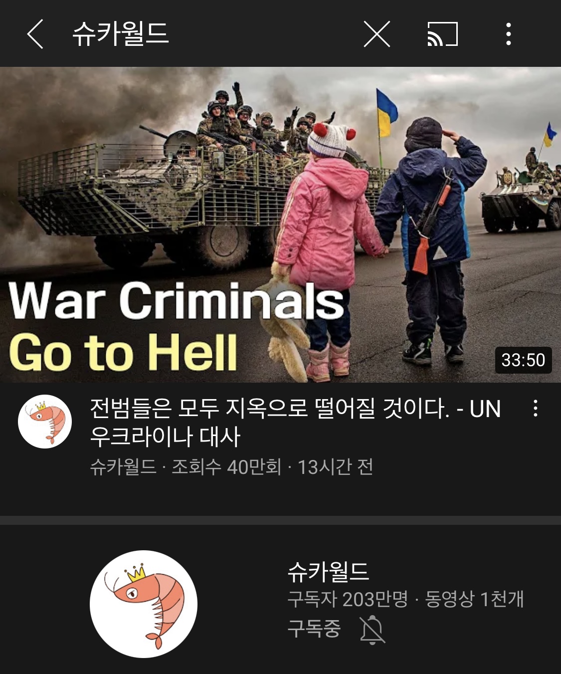 두 아이가 우크라이나군을 배웅하는 모습이 담긴 사진은 온라인 상에서 뜨거운 관심을 불러일으켰습니다. 슈카월드에서 우크라이나 이야기를 하면서 영상 썸네일에 이용했습니다.