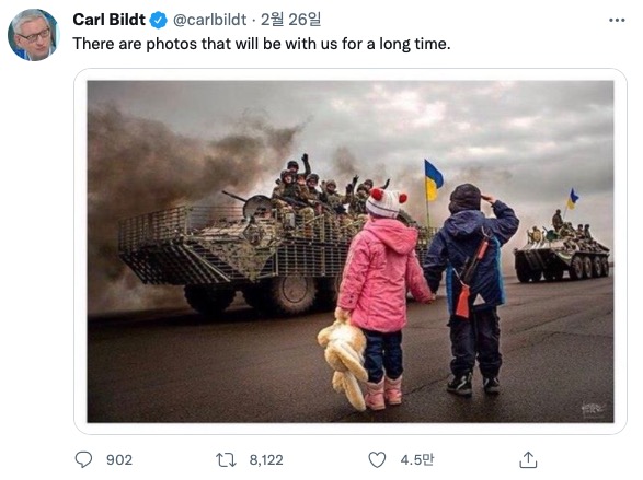 미국 아담 킨징거 하원의원과 칼 빌트 전 스웨덴 총리도 현재 상황인 줄 알고 트위터에 올렸습니다.