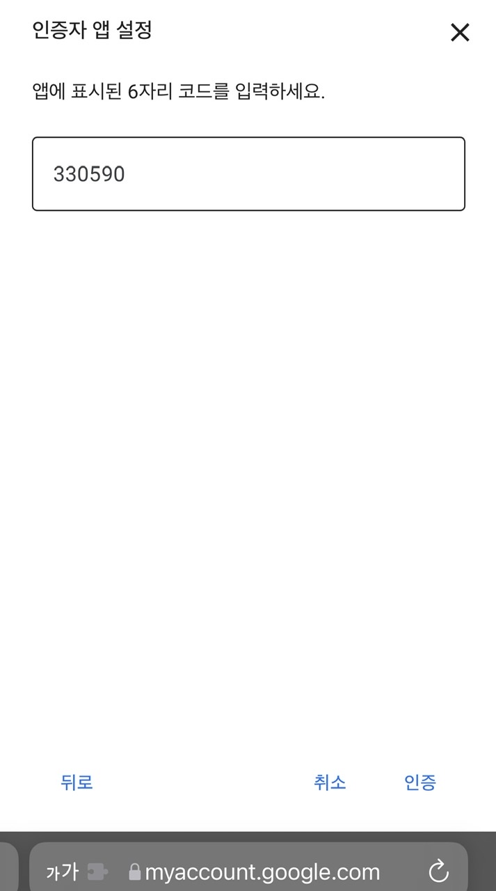 앞서 얘기한 설정>암호에 들어가 설정하려는 구글 id에 들어가서 확인 코드 설정을 누릅니다.