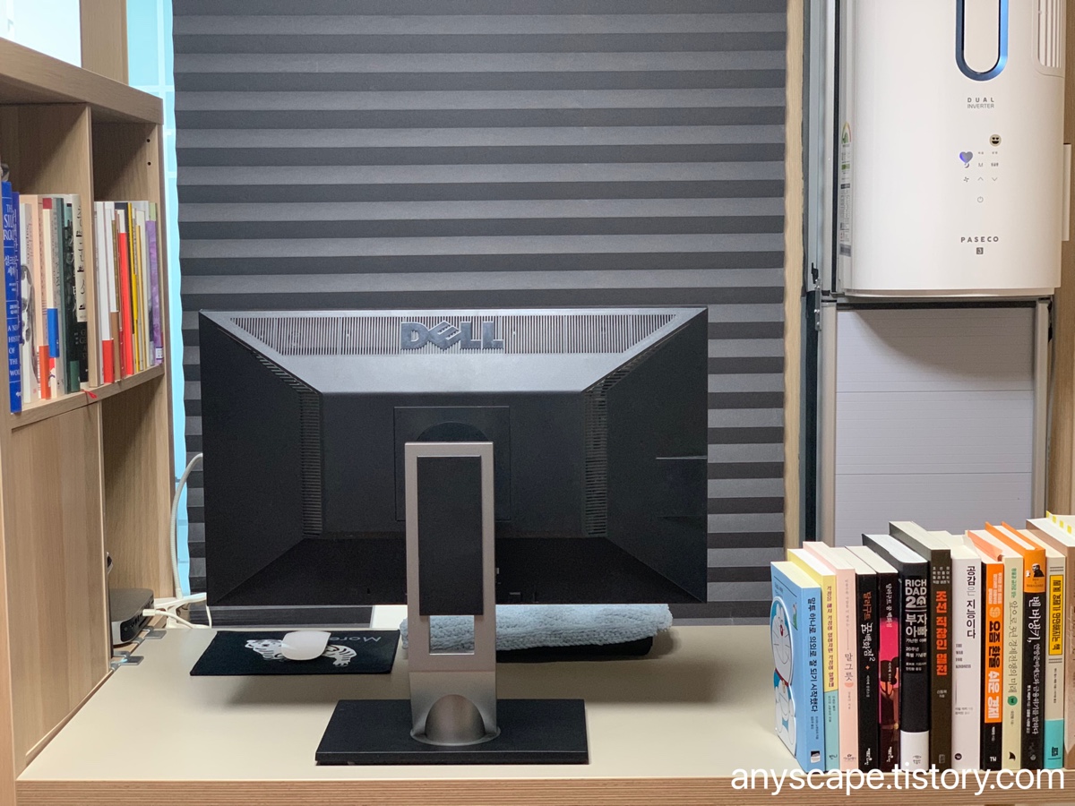 벽을 보던 책상을 벽을 등지게 위치를 변경했는데 이러고 나니 문제가 방에서 모니터가 너무 눈에 거슬린다는 점이었습니다.