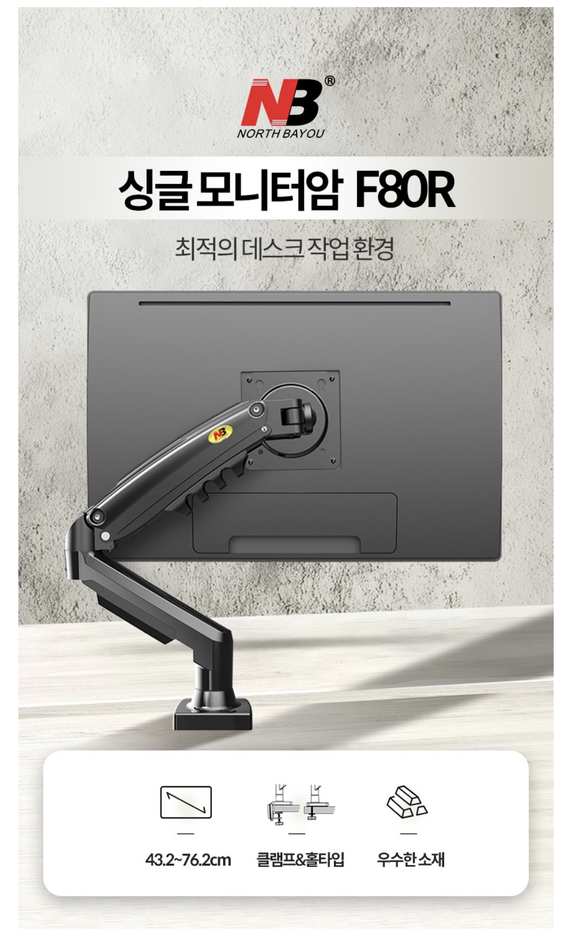 제가 구입한 모델은 NB F-80 싱글 모니터암입니다.