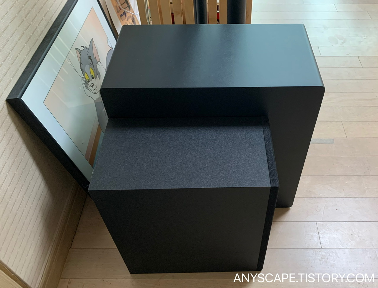 그리고 커다란 서브우퍼의 체급에 맞게 저음이 거실을 가득 메워 줬습니다. 이전에 쓰던 폴크 시그나 S2도 처음 구입했을 때 서브우퍼가 주는 소리가 감동했었는데 이것과는 비교가 안 되네요. 정말이지 공간을 가득 메워버리더군요.