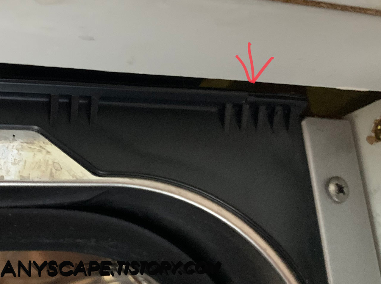 식기세척기가 설치된 안쪽을 보려면 식기세척기를 싱크대에서 꺼내야 합니다.