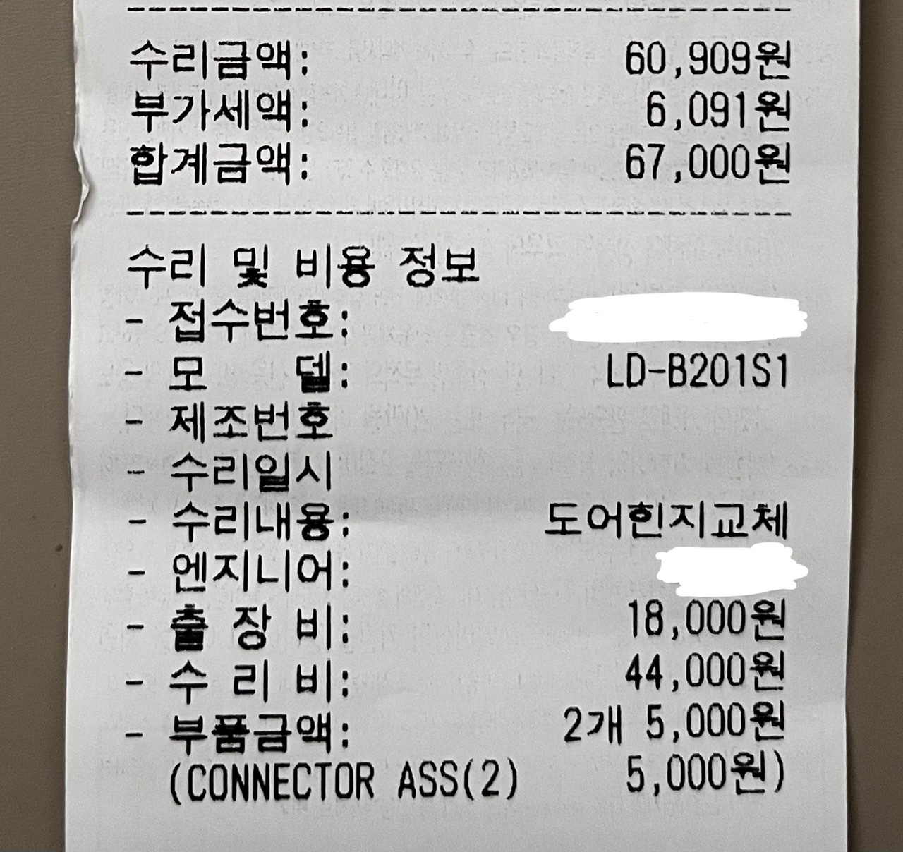 문을 고정시키는 어떤 부품이 망가진 것 같았습니다. AS 부르려니 너무 오래 걸려서 한번 열어 보기로 했습니다.