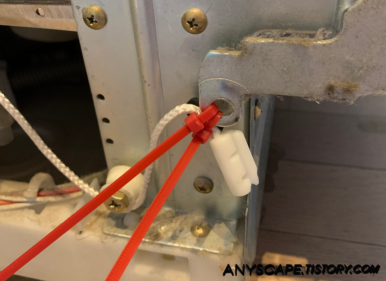 안일하게 플라스틱 케이블타이로 고정했더니 금방 끊어져서 결국 AS를 불렀습니다. 기사님 오셔서 한 20분도 안 걸려서 수리를 하고 가셨는데 수리비가 생각보다 많이 나왔습니다. 이정도 나올 줄 알았으면 그냥 금속 와이어라도 구해서 자가수리 하는건데...
