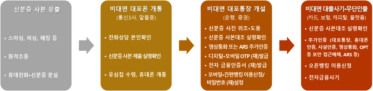 그런데 충격적이게도 금융사에서 '신분증 진위확인' 절차나 '신분증 위‧변조확인 시스템' 등의 시스템이 갖춰져 있지 않고 신분증 '사본'만 가지도고 인증을 통과할 수 있다고 합니다.