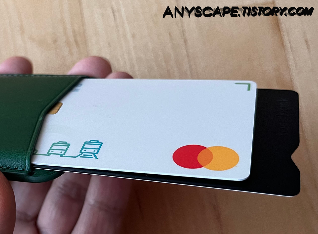 제가 사용하는 교통카드를 넣어봤습니다. 그런데 좀 헐렁한 느낌이 듭니다.