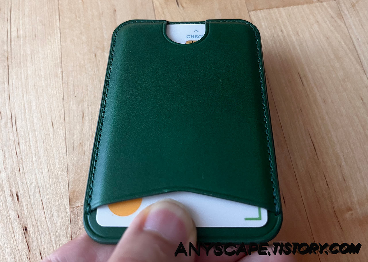 카드를 2장 넣으려고 해 봤습니다만 2장 넣기에는 많이 뻑뻑합니다. 길들이기를 하면 2장도 충분히 들어갈 것 같긴 하네요.