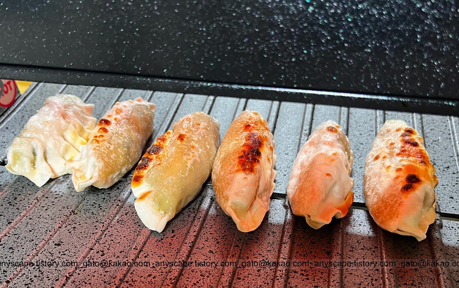 새 기기를 샀으니 이것저것 시험을 하게 됩니다. 냉동 만두를 전자레인지에 돌려서 데운 뒤 기름을 칠해서