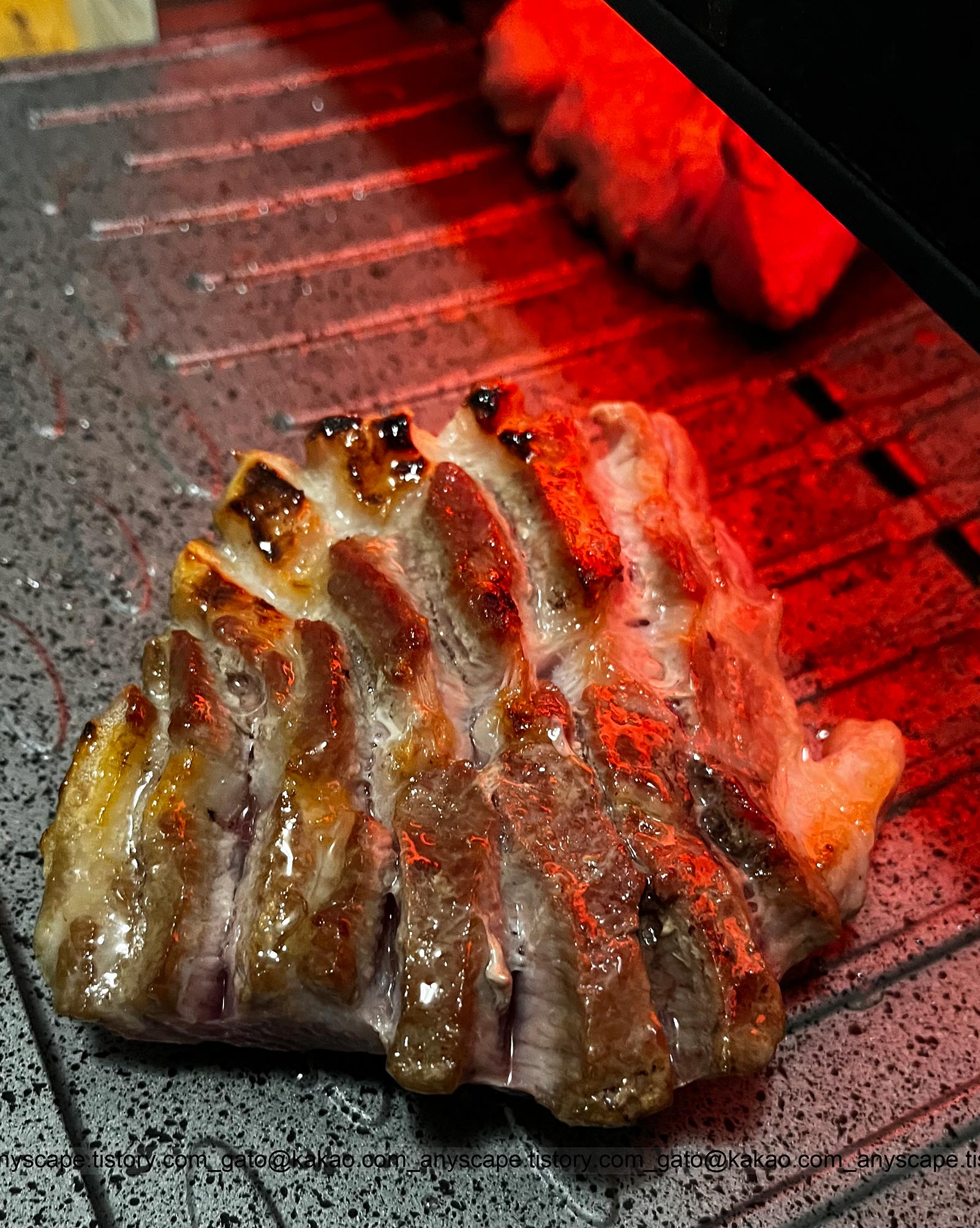 이렇게 두꺼운 고기들도 겉은 바삭하게, 안은 촉촉하게 구울 수가 있습니다. 불판 높이를 올렸다 내렸다 노하우만 좀 익히면요.