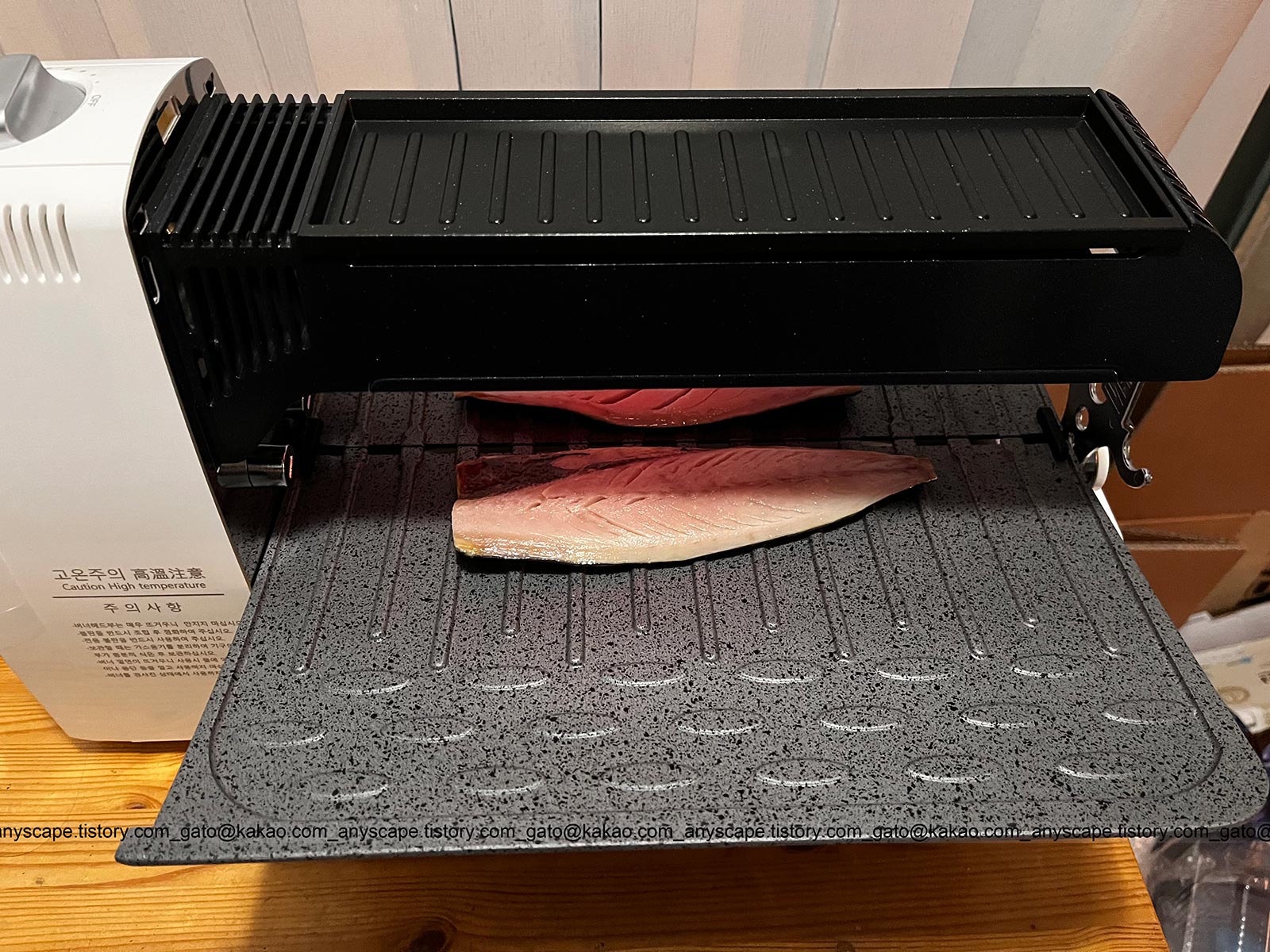 베란다에서 고등어를 구워봤습니다. 브라텐이 후라이팬보다는 훨씬 냄새가 덜하지만 연기가 안 나는 것은 아닙니다. 확실히 덜 나긴 하지만요.