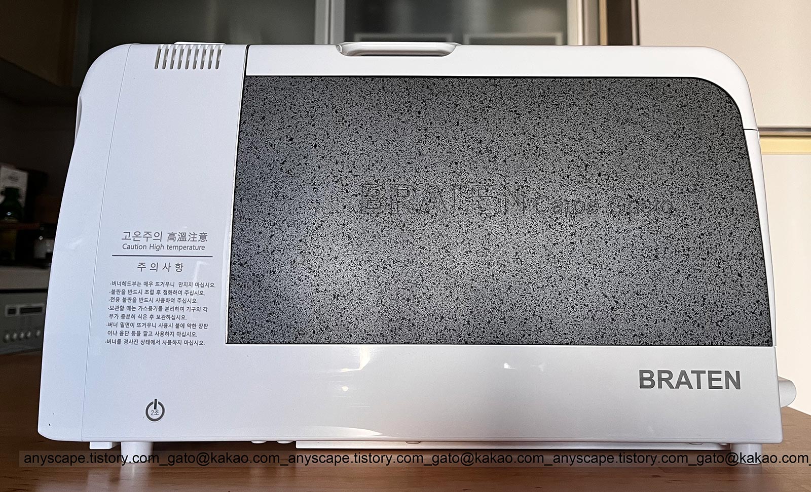 그러다 우연히 유튜브에서 브라텐 사용기를 봤는데 연기가 안 난다고 해서 관심이 가더라고요. 브라텐은 일반 불판과 달리 위에서 가열하는 방식입니다. 한때 거의 모든 가정에 한 대씩은 있었다는 자이글과 유사한 방식입니다.