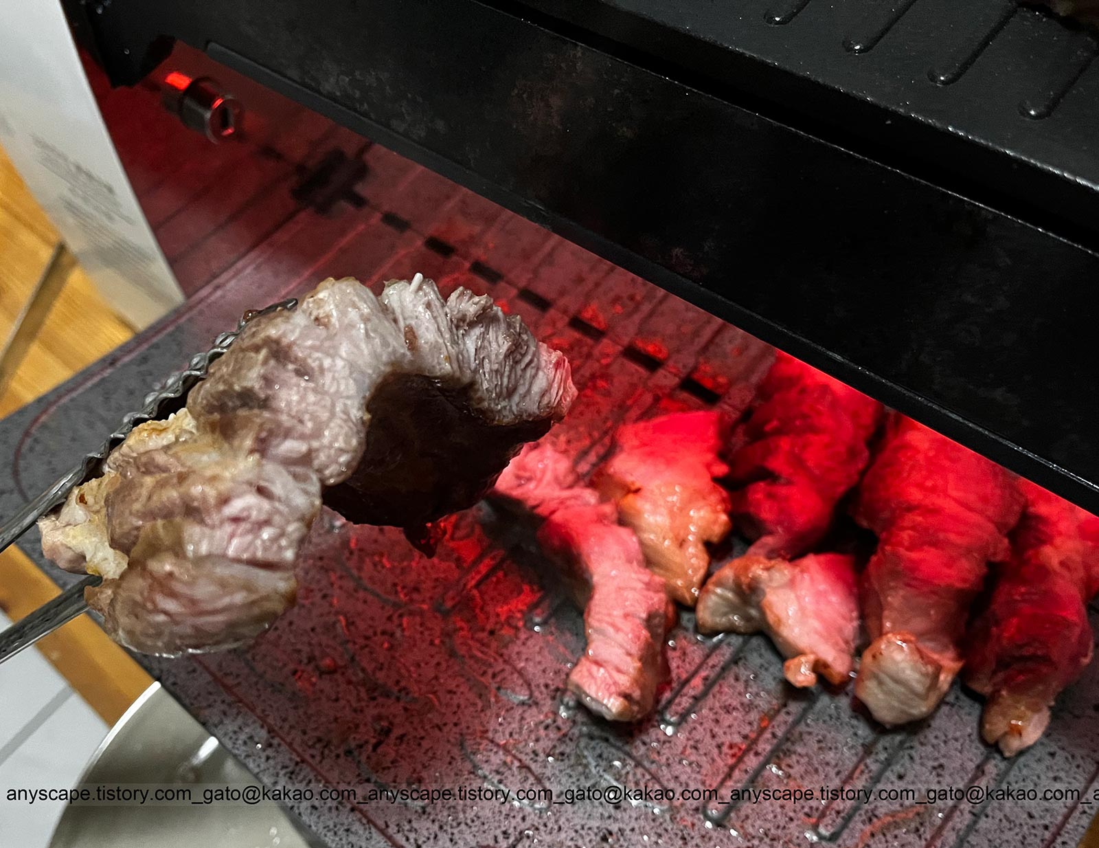 저도 아직 육고기는 10번 이내로 구워봐서 아직 확실히 손에 익은 건 아니지만 이제 슬슬 감이 잡히기 시작했습니다. 높이를 올렸다 내렸다 조절을 잘하면 원하는 정도의 굽기가 가능합니다.