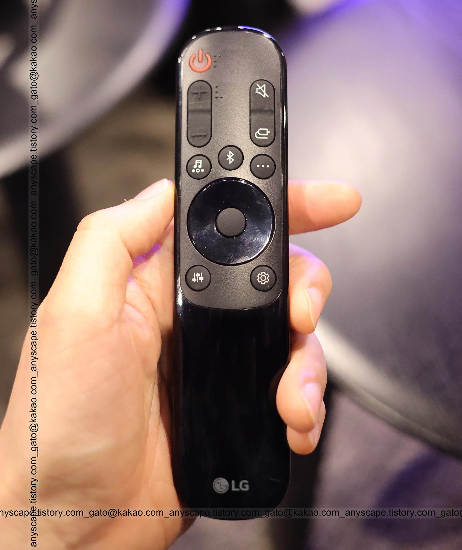 사운드바 리모콘이 별도로 있기는 하지만 스마트 TV 리모콘으로 웬만한 조작은 다 가능하기 때문에 시연회 당시에서도 사운드바 리모콘은 거의 사용하지를 않았습니다.