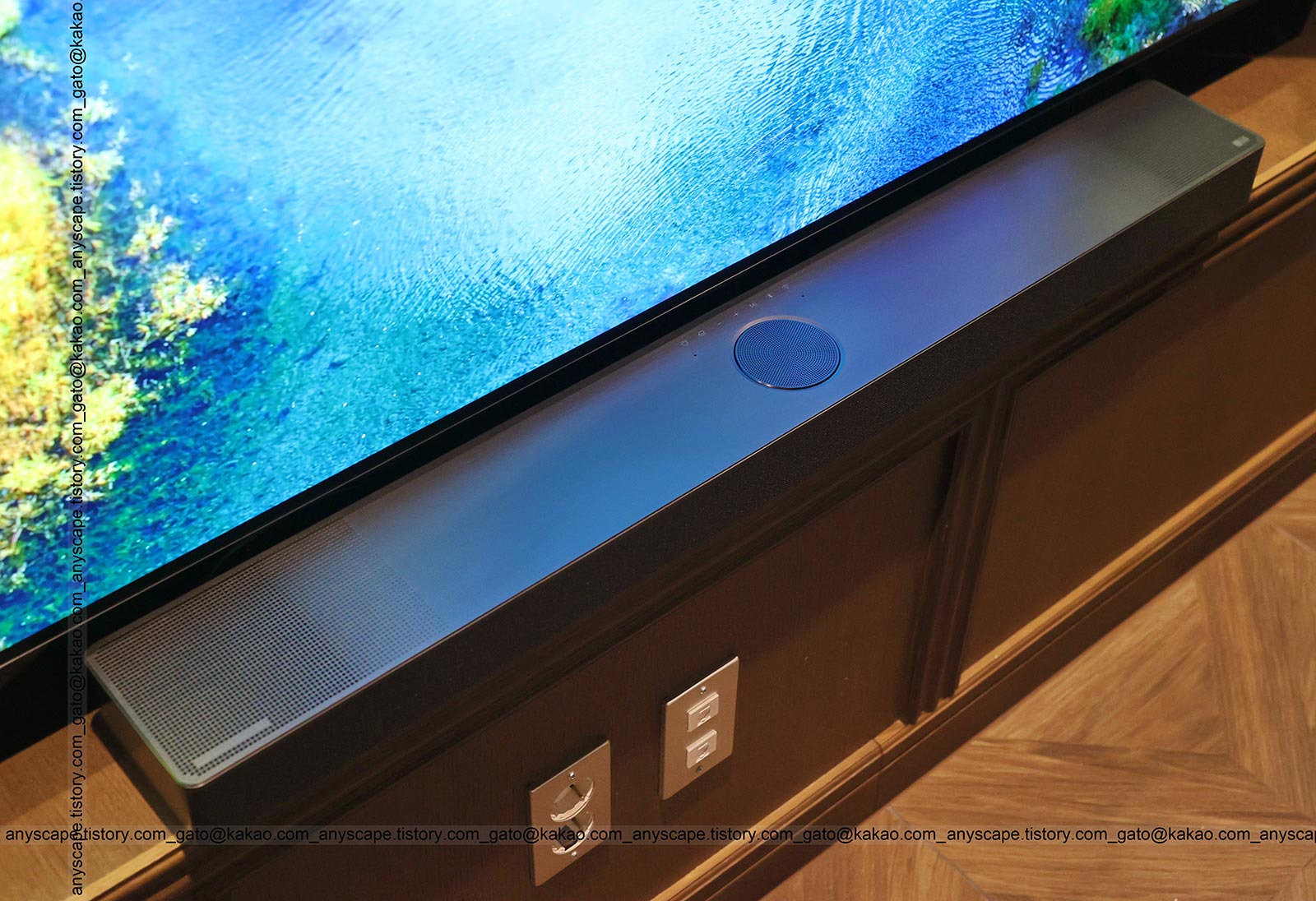 LG전자 사운드바 SC9S는 2023년 신제품입니다. 이 사운드바는 여기 시연회장에 설치된 LG 올레드 TV C시리즈(*22년형, 23년형 올레드 C 시리즈 55/65/77형)와 함께 사용할 경우 인테리어, 사운드 측면에서 강력한 시너지 효과를 낸다고 합니다.